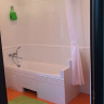 Ванна со шторкой, подобранной в тон цвету отделки, смотрится элегантно и эстетично.
